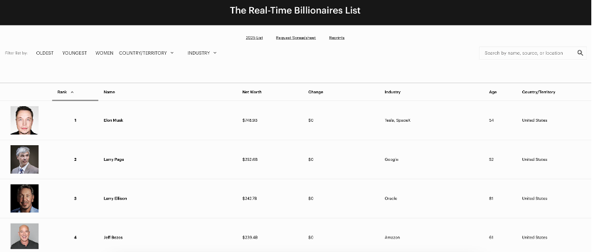 值得一提的是,此次财富突破不仅创造了个人财富新纪录,也进一步扩大了马斯克与其他富豪的差距。据《福布斯》实时亿万富豪榜数据,马斯克当前财富已超过排名第二的谷歌联合创始人拉里·佩奇近5000亿美元,创下全球富豪榜上最大的财富鸿沟。