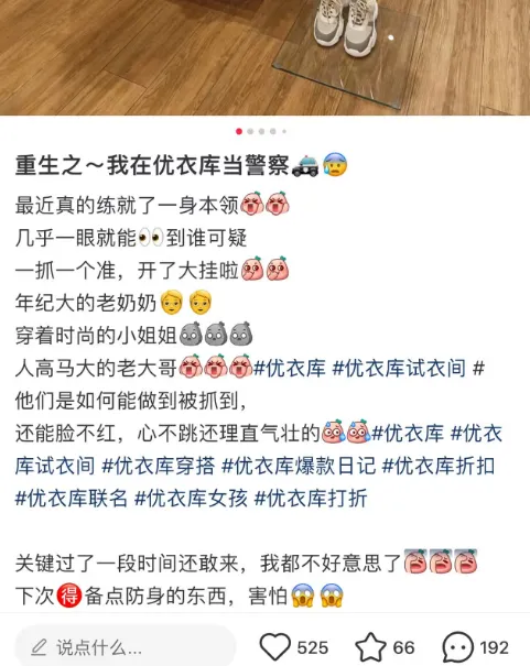 此外,还有自称在优衣库员工作的网友表示,“我在优衣库当警察,几乎一眼就能看到谁可疑,一抓一个准……”