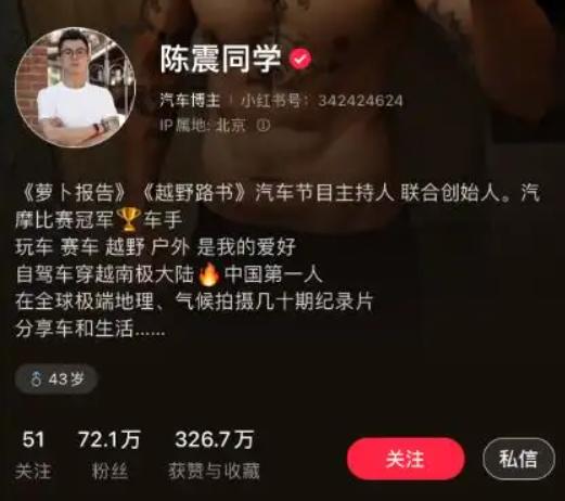 12月21日,车评人@陈震同学的小红书、B站等平台账号恢复正常,不再外显违规、封禁等标识。相关账号的关注、留言等功能也恢复正常,但暂时没发布新内容。