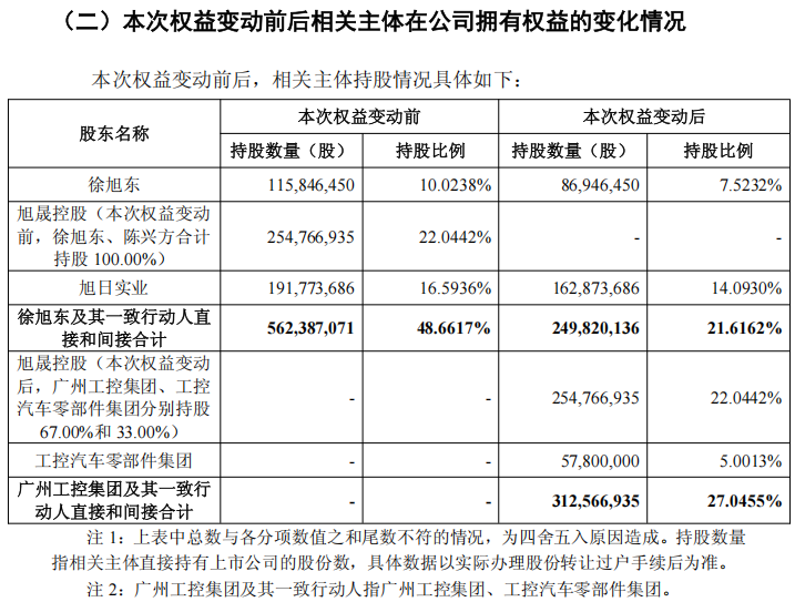 根据协议,徐旭东拟向广州工控集团转让所持旭晟控股51%的股权,陈兴方拟向广州工控集团、工控汽车零部件集团分别转让所持旭晟控股16%的股权、33%的股权。