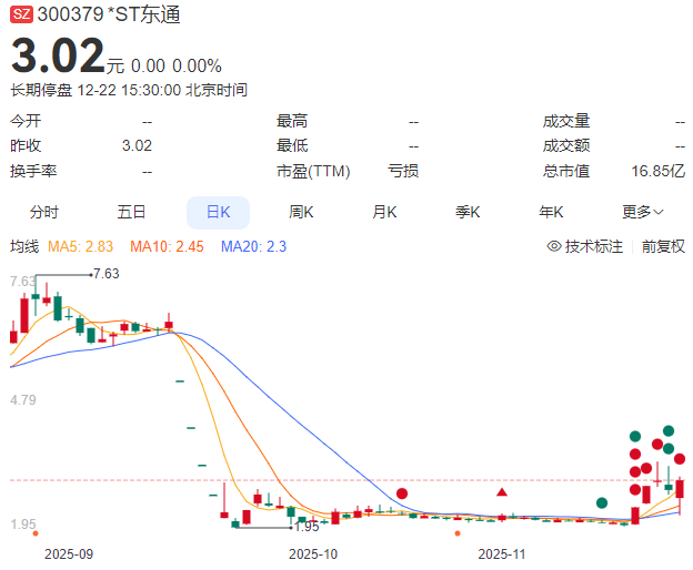 行情资料显示,*ST东通目前股价为3.02元/股,总市值不足17亿元。