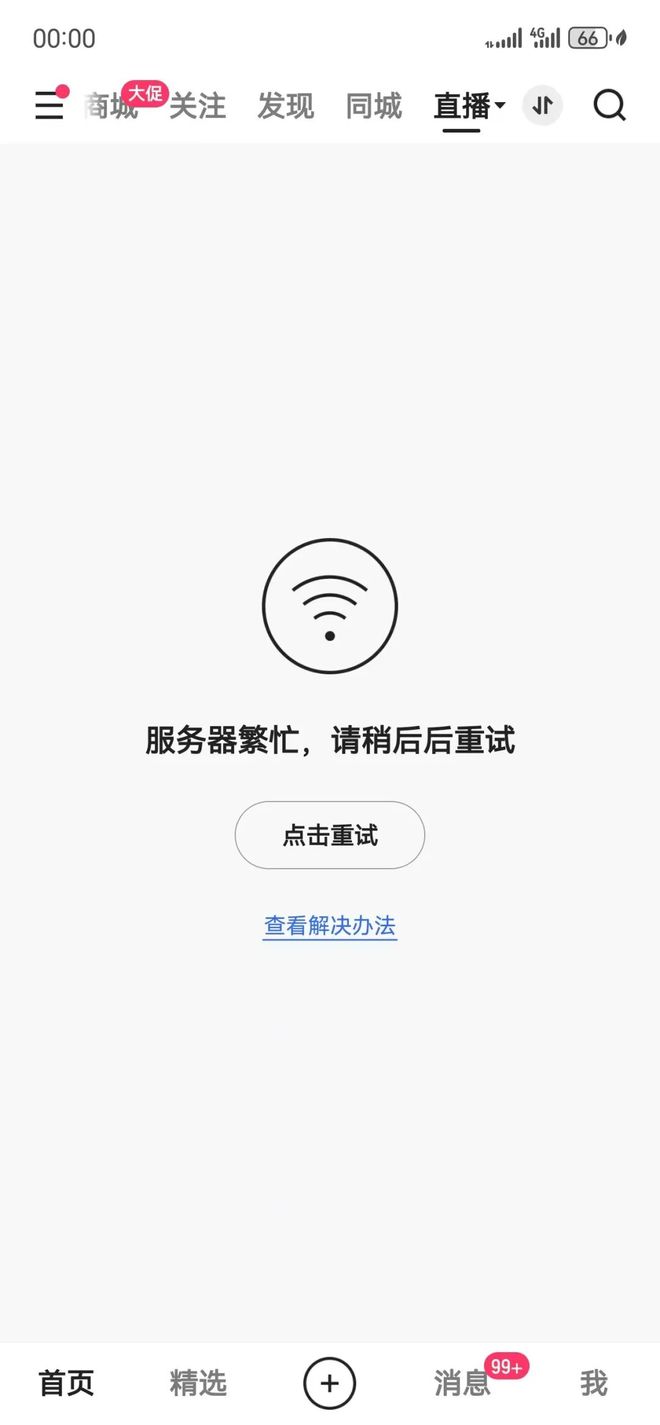 一直到12月23日0点,平台方面才“反应过来”,开始大规模处置,直播频道显示“服务器繁忙,请稍后重试”;笔者注意到其他短视频频道页面均正常,只有直播页面无法查看。