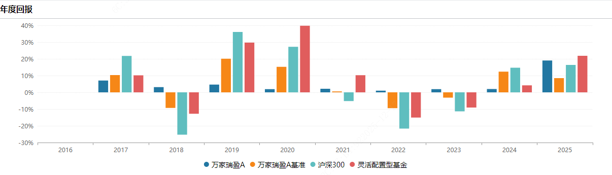 虽然类型属于灵活配置基金,但万家瑞盈早年数任基金经理大多聚焦固收投资,产品净值走势与定位却更接近一只固收+。
