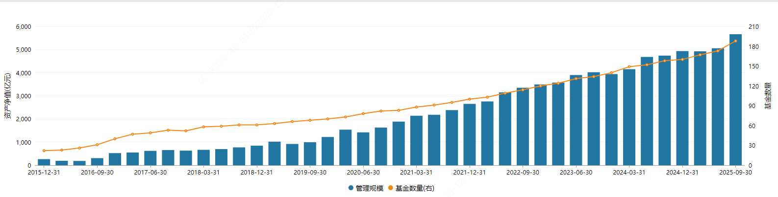根据wind数据库,自2024年年末至2025年三季度末,万家基金的管理规模逆势增长,其中股票型基金产品规模快速扩充至237.83亿元。