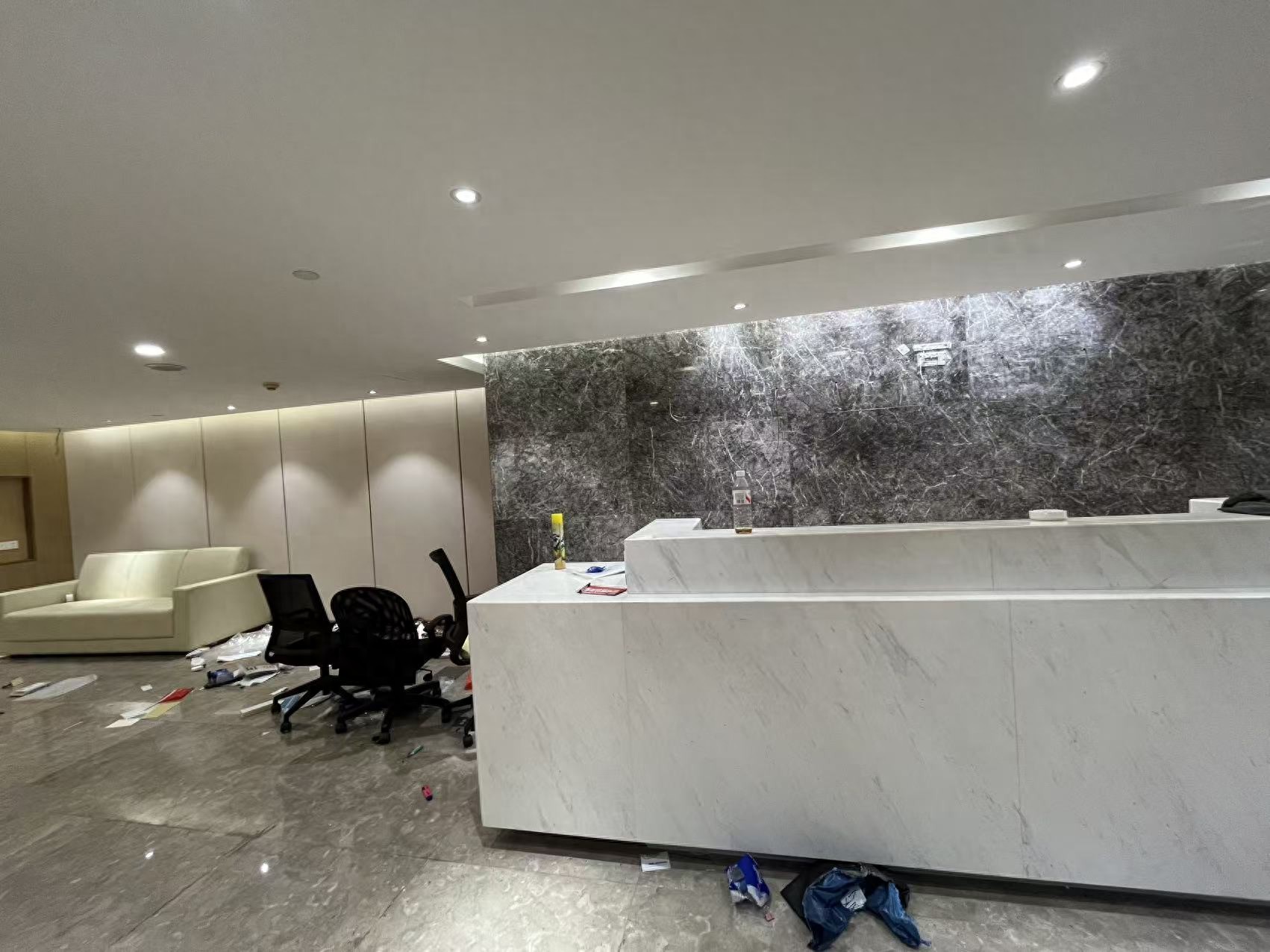 界面新闻记者留意到,大厦单层面积较大,内设多个办公室,原在入门位置的“金雅福”大字已被铲去,现场还有多个荣誉奖牌未被带走。当天有工人在清理现场,有物业人员告诉界面新闻记者,相关物业要重新出租。关于是主动退租还是强制撤场、租金交付情况等问题,对方表示并不清楚。