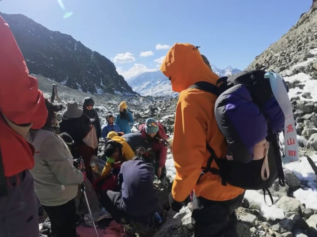 现场视频显示,海拔约4000米的乱石滩上,众人围着失去意识的亮亮紧急施救。“谁有氧气?”“快送下山!”呼喊声此起彼伏。同行者为他供氧、掐人中,并用保温毯、羽绒服包裹。王先生称,他们用完了随身携带的氧气瓶进行施救,也有热心路人提供了氧气。