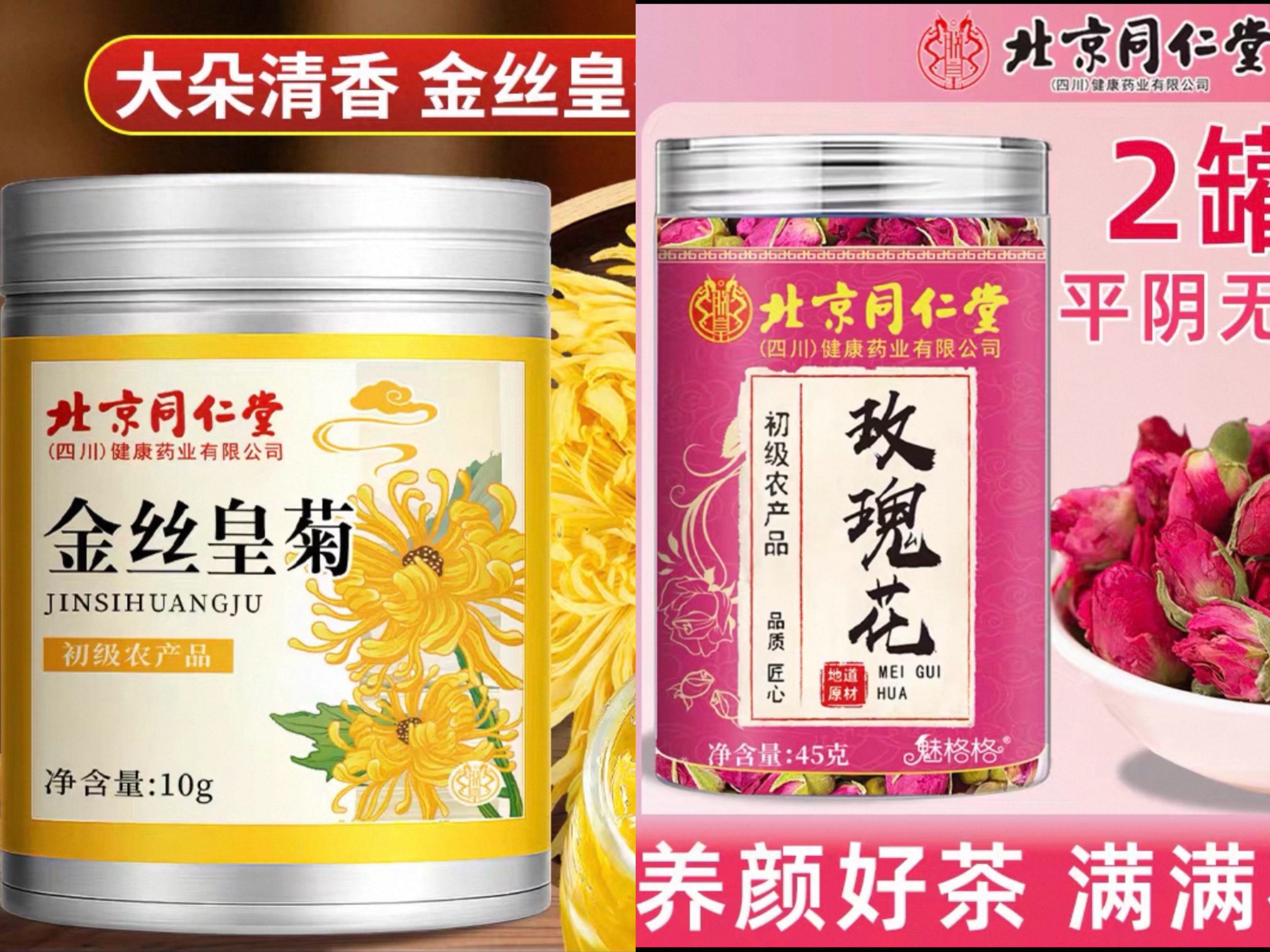 19日,中新经纬在电商平台搜索“北京同仁堂”,出现了多款产品,其中店铺“国货严选旗舰店”售卖的“北京同仁堂金丝皇菊特级大朵菊花茶叶”“北京同仁堂平阴重瓣玫瑰花”全网销量均超60万。