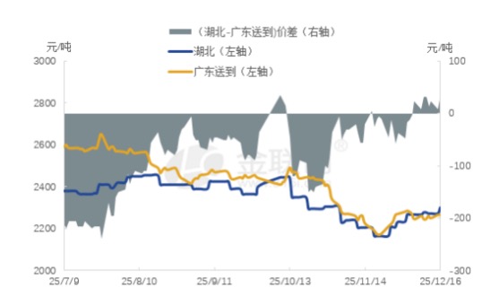 自11月底以来,广东甲醇在港口库存高压下,价格略有下行;湖北因关中装置有临时检修,外部供应收紧,价格相对强势,造成两地价差拉大。据金联创统计,12月初广东送到-湖北最大价差在33元/吨。据悉,当时有终端企业通过贸易形式小量采购广东货源。