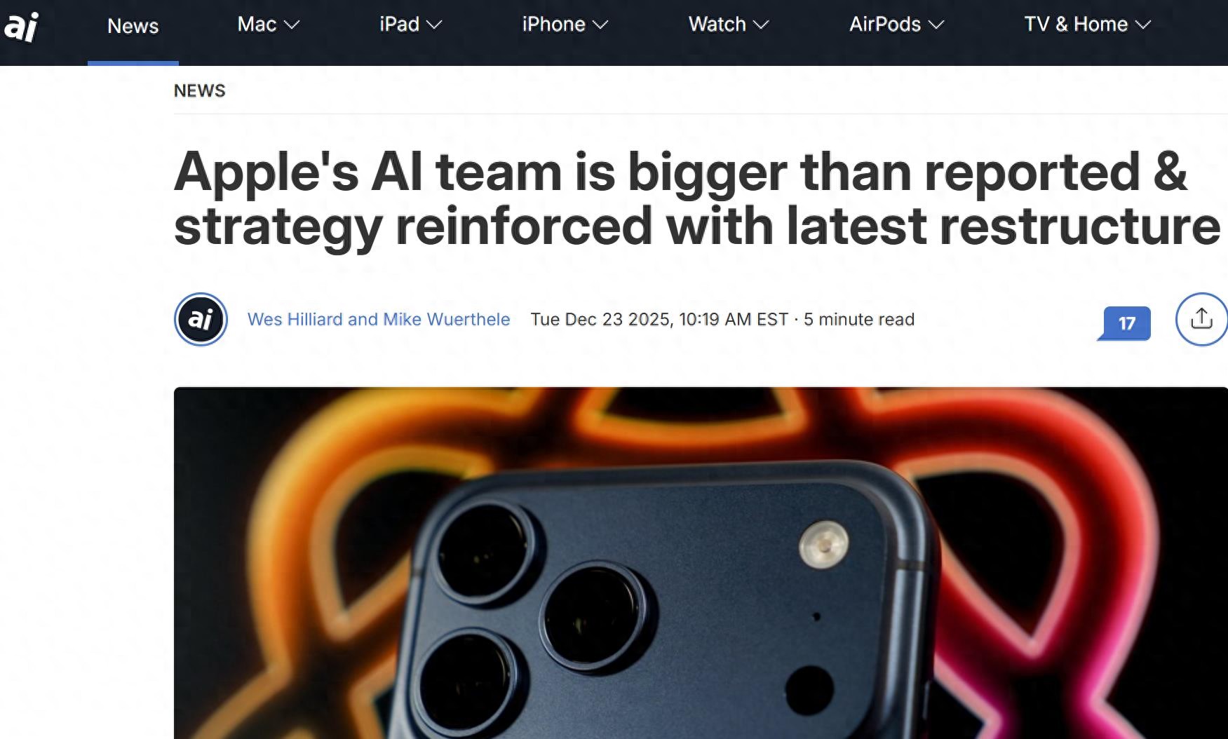 12月24日消息,据appleinsider报道称,尽管过去一年多次传出高管离职与项目延误的消息,苹果公司的人工智能(AI)团队实际上规模远超外界预期,并正通过内部重组强化其长期战略。