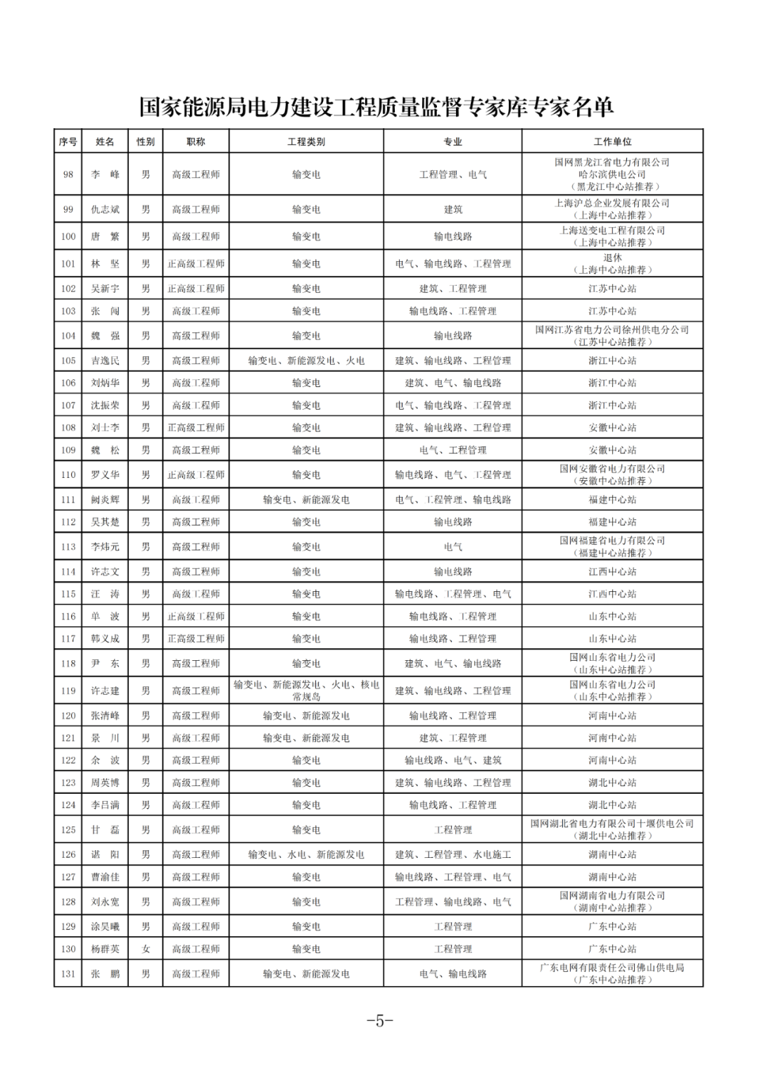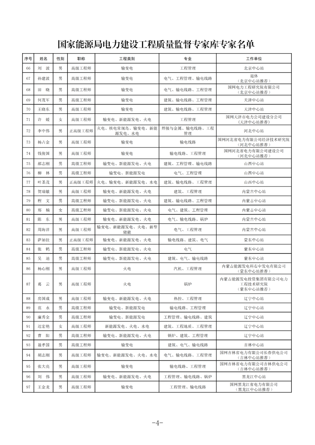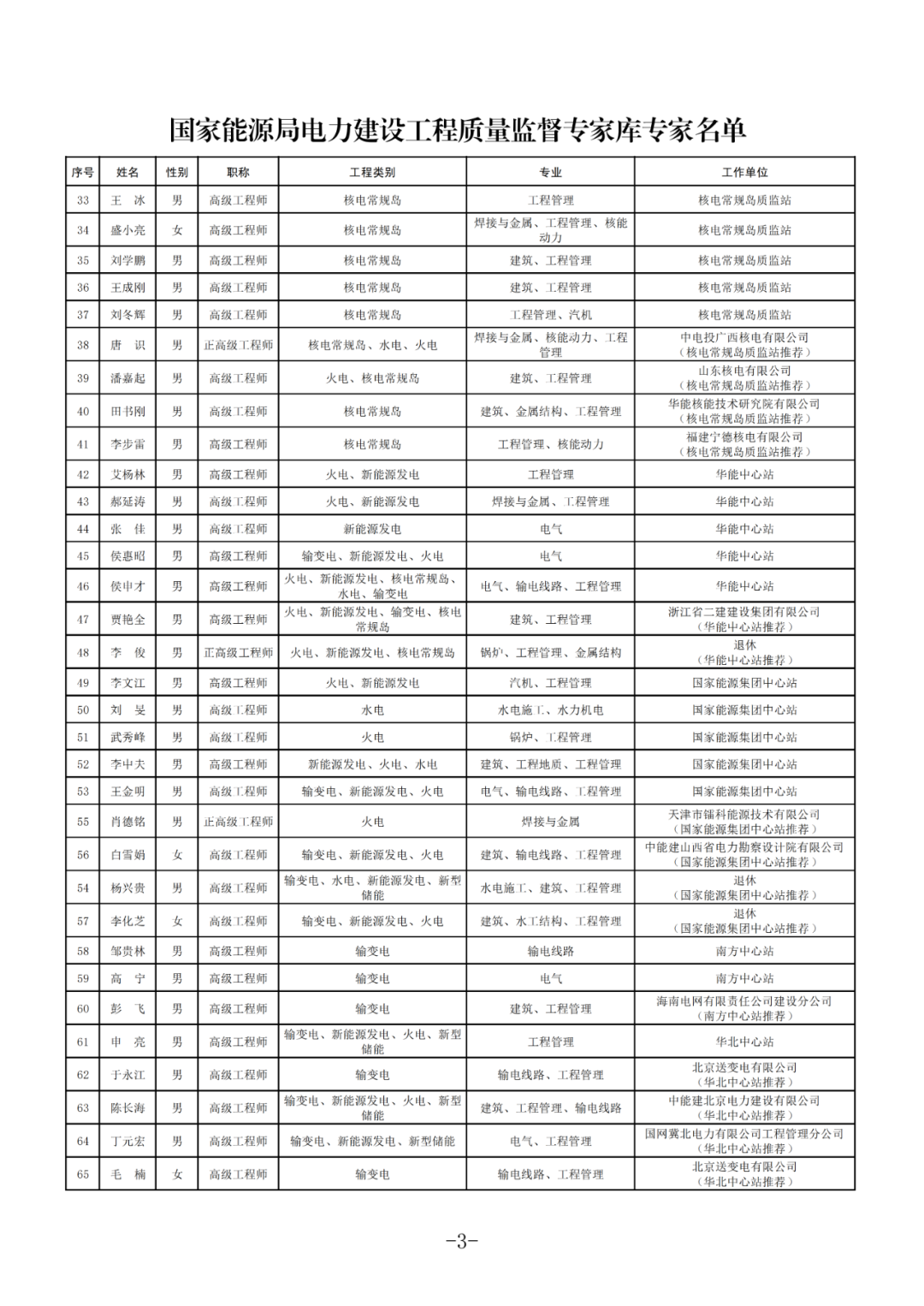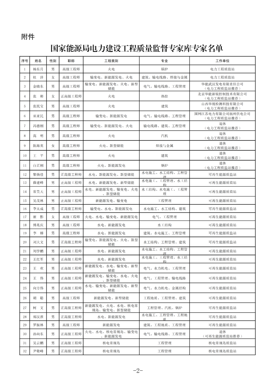 附件:国家能源局电力建设工程质量监督专家库专家名单