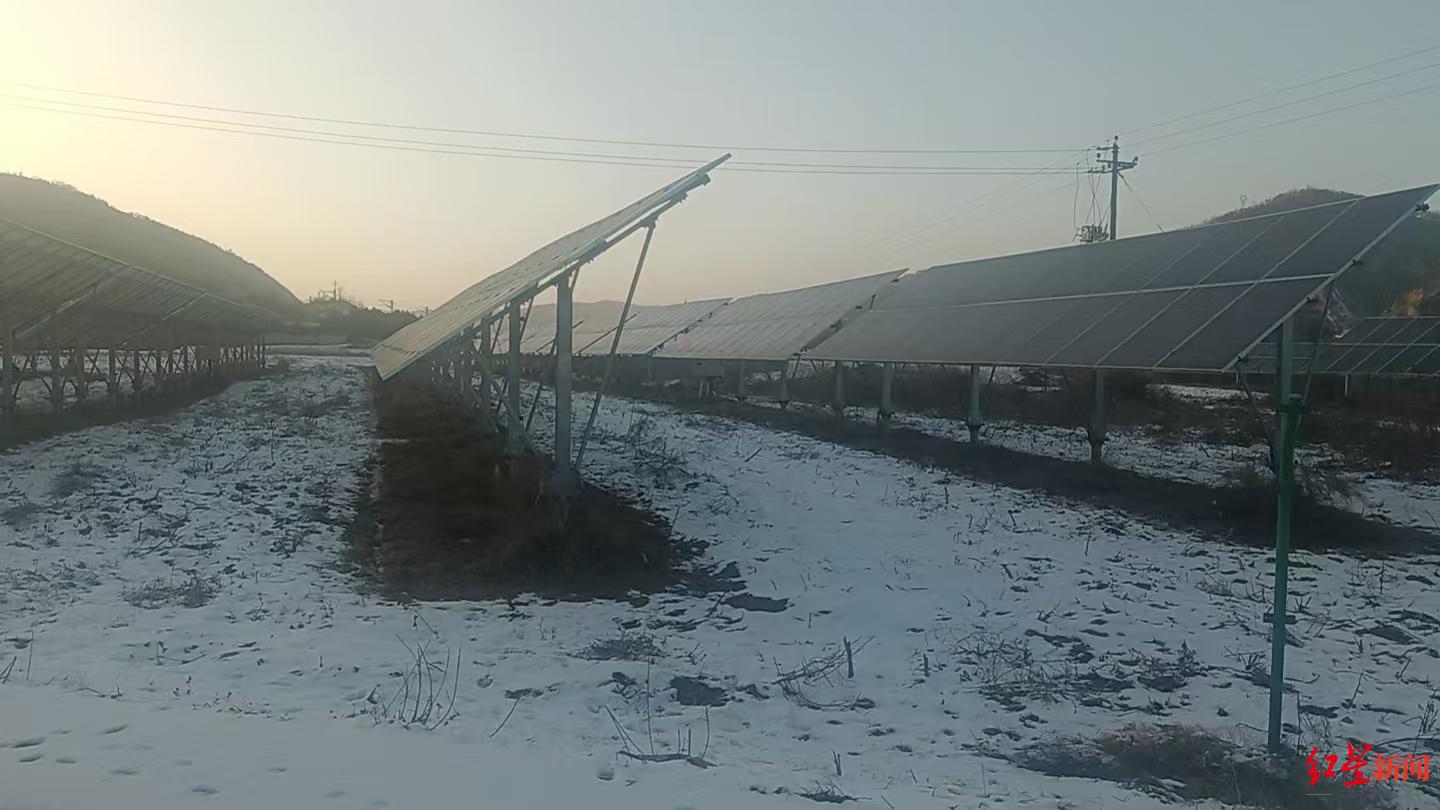 杨某向红星新闻记者提供了现场所拍摄的照片和视频,显示该光伏发电项目为子长市新能源开发有限公司11.7兆瓦光伏电站。在这片耕地上,光伏电板一排排错落摆放在田埂之间,经过一场大雪之后,田地间的雪还没有融化,只有光伏电板下面未落雪长着荒草。
