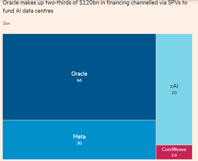 Meta、xAI、甲骨文及数据中心运营商CoreWeave是业内率先开展这一复杂融资交易的公司,以保护其公司免受建设人工智能数据中心所需的大量借款的影响。然而不难看到,越是“遮遮掩掩”,市场对它们的处境也越发担忧——CoreWeave和甲骨文已成为了过去几个月AI抛售行情的“震中”……