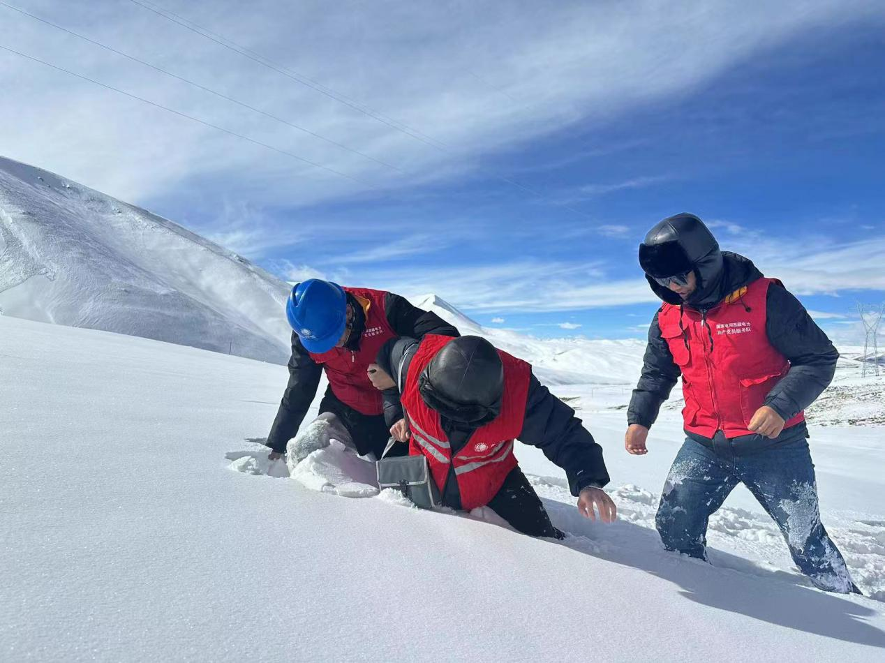 这支巡线队伍里,每个人的深褐色脸庞都刻满高原紫外线留下的印记,厚重的工服裹不住刺骨寒意,却紧紧裹着守护电网的赤诚。高海拔的缺氧感如影随形,每走一步都要大口喘息,胸口仿佛压着千斤巨石,徒步攀爬的每一级台阶,都是对体力与意志的极限考验。但没有人退缩,他们的脚步在震后的雪原上坚定向前,朝着一座座矗立在高原的输电铁塔迈进。