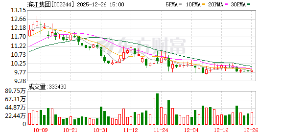 12月26日,滨江集团收报9.88元/股,微涨0.71%,市值307.41亿元。