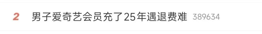 12月28日,话题“男子爱奇艺会员充了25年遇退费难”登上热搜。