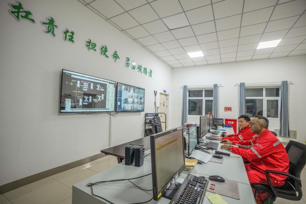 12月24日,中国石油新疆油田采油二厂八区530井区二氧化碳混相驱先导试验站在时刻关注注碳情况。新华社发 徐志远 摄