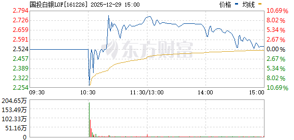 上午10:30,国投白银LOF复牌后出现大幅波动,直线跌停后又快速拉升,二十分钟左右逼近涨停,随后在6%的涨幅附近震荡。
