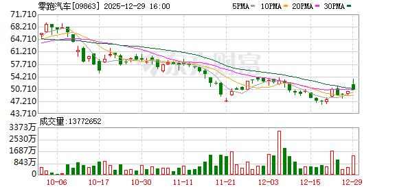 截至发稿,零跑汽车报51.20港元/股,上涨2.52%。