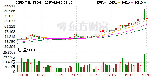 美东时间12月29日,以白银为首的贵金属全线重挫,截至收盘,COMEX黄金期货大跌4.45%,报4350.2美元/盎司;COMEX白银期货暴跌7.2%,报71.64美元/盎司;现货黄金大跌超4%,现货白银暴跌超9%,现货钯金暴跌超15%,现货铂金暴跌超14%。