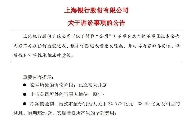 2024年9月,上海银行发布公告,公司收到收到广东省高级人民法院的《受理案件通知书》,深圳分行以金融借款合同纠纷为由,对违约方提起诉讼。距近日一审宣判已过去一年多的时间。