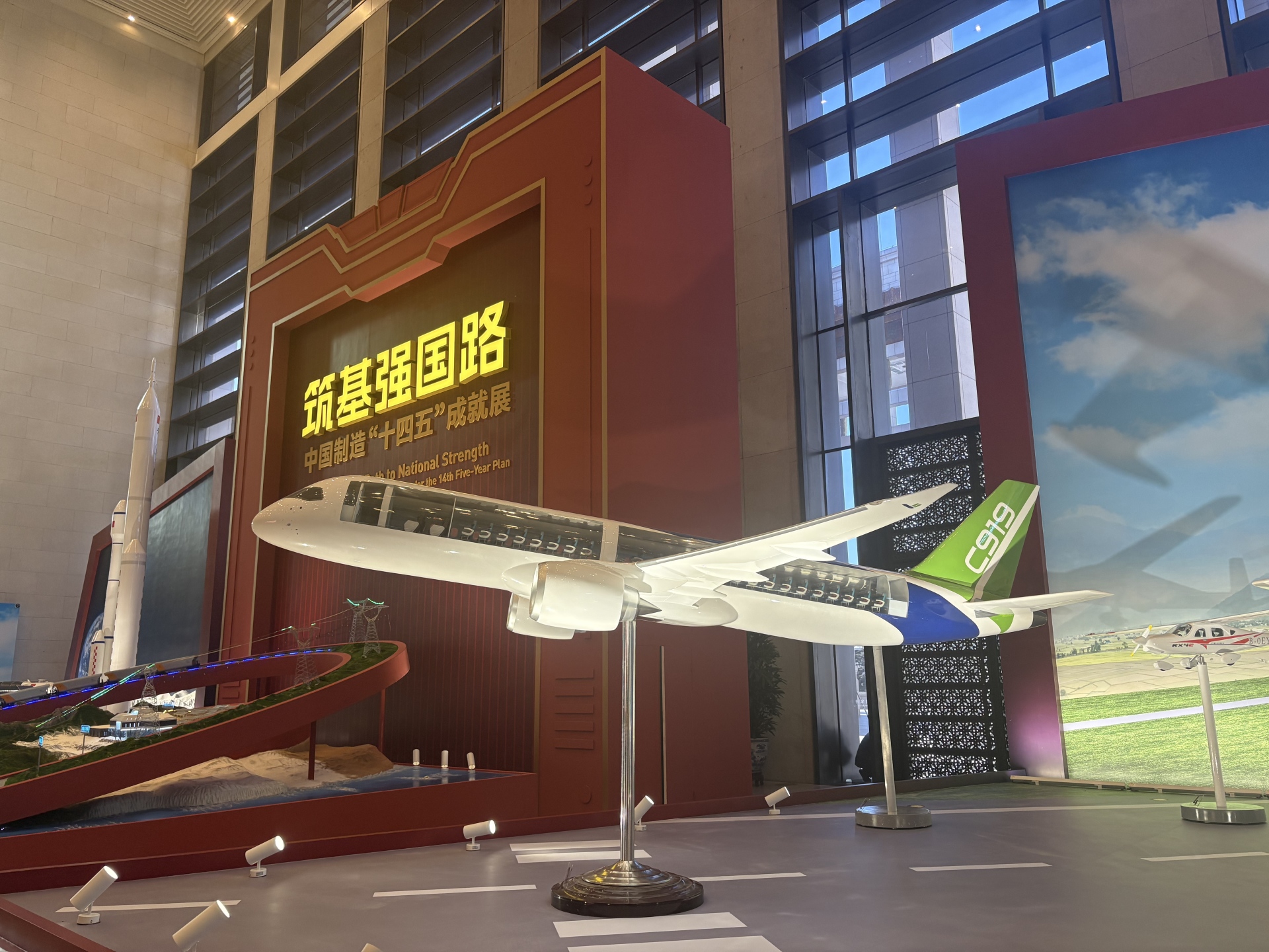 国家博物馆艺术长廊展区展出的C919大飞机模型