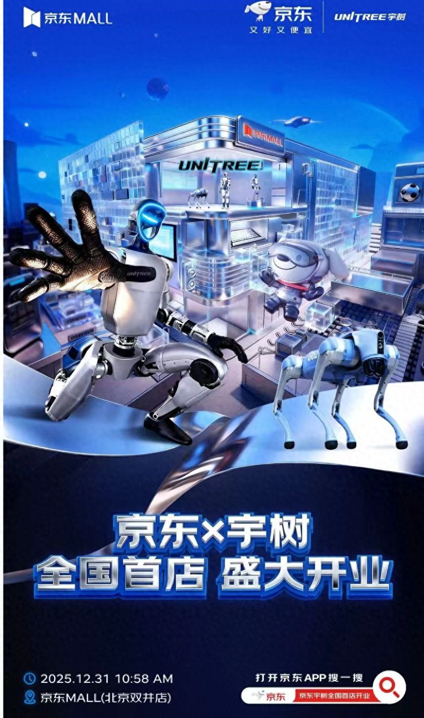 12月29日,宇树科技在官方微信账号发文,宣布全国首店将于12月31日在北京双井开业,这也意味着宇树机器人线下商店要来了。
