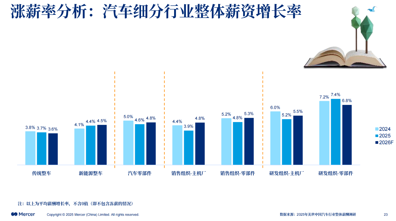 在这个特别的年份,各项重大汽车事件的背后都是汽车人才在努力工作,努力推动各项事务的落地,汽车人辛勤劳动的薪资如何?哪些岗位薪资高?近日,美世咨询发布2025-2026美世中国汽车行业薪酬调研报告,揭示了汽车行业的薪资情况。