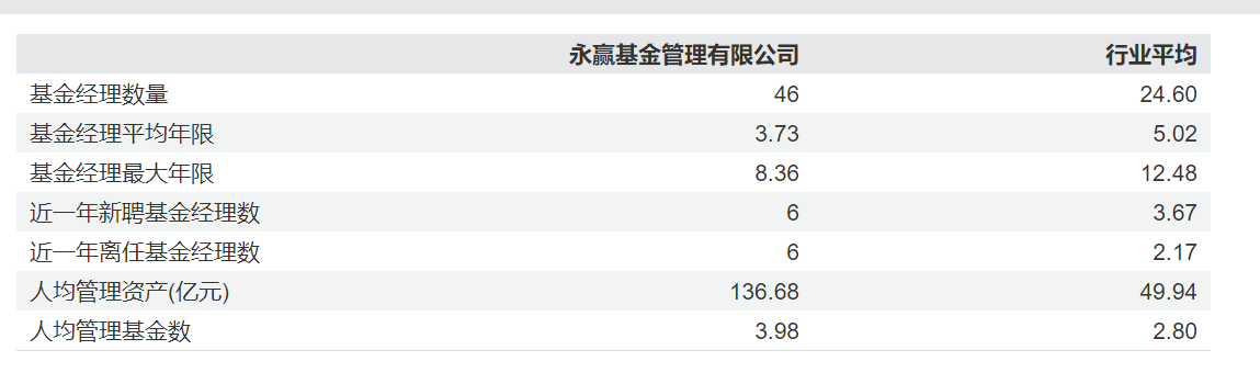 Wind数据显示,近一年永赢基金离职的基金经理(如李永兴、常远等)平均从业年限超过7年;而同期新聘任的6位基金经理中,有6人从业年限不足一年。截至12月底,永赢在职的46位基金经理,平均管理年限仅为3.73年,显著低于行业5.02年的平均水平。