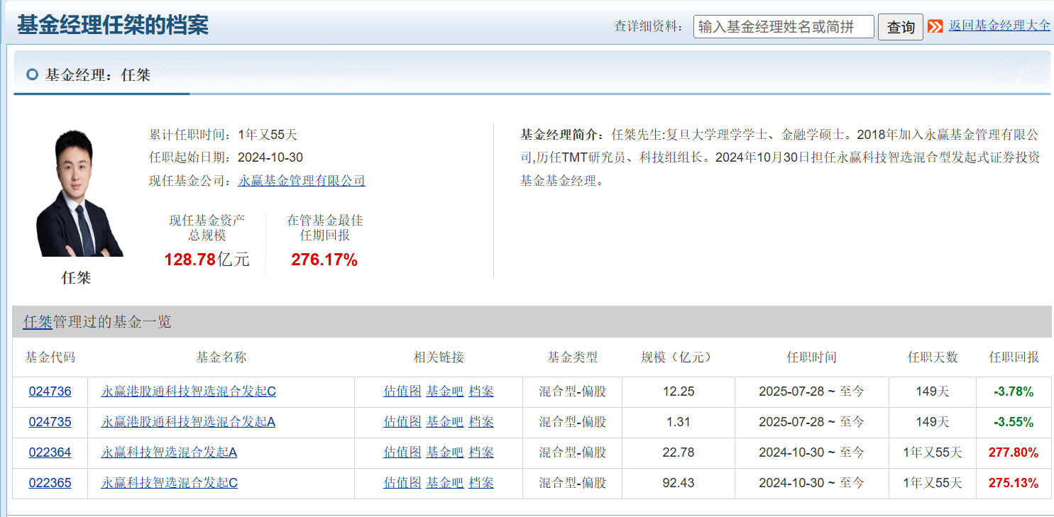 2025 年,永赢基金在公募行业实现了一场堪称 “逆袭” 的规模扩张。Wind 数据显示,截至 2025 年三季度末,其混合型基金管理规模突破千亿大关,达 1056 亿元,较去年同期的 185 亿元激增约 4.7 倍,行业排名从第 45 位跃升至第 10 位。旗下新人基金经理任桀管理的永赢科技智选 A,凭借年内超 200% 的收益率成为市场焦点,推动该产品成为 “吸金主力”。