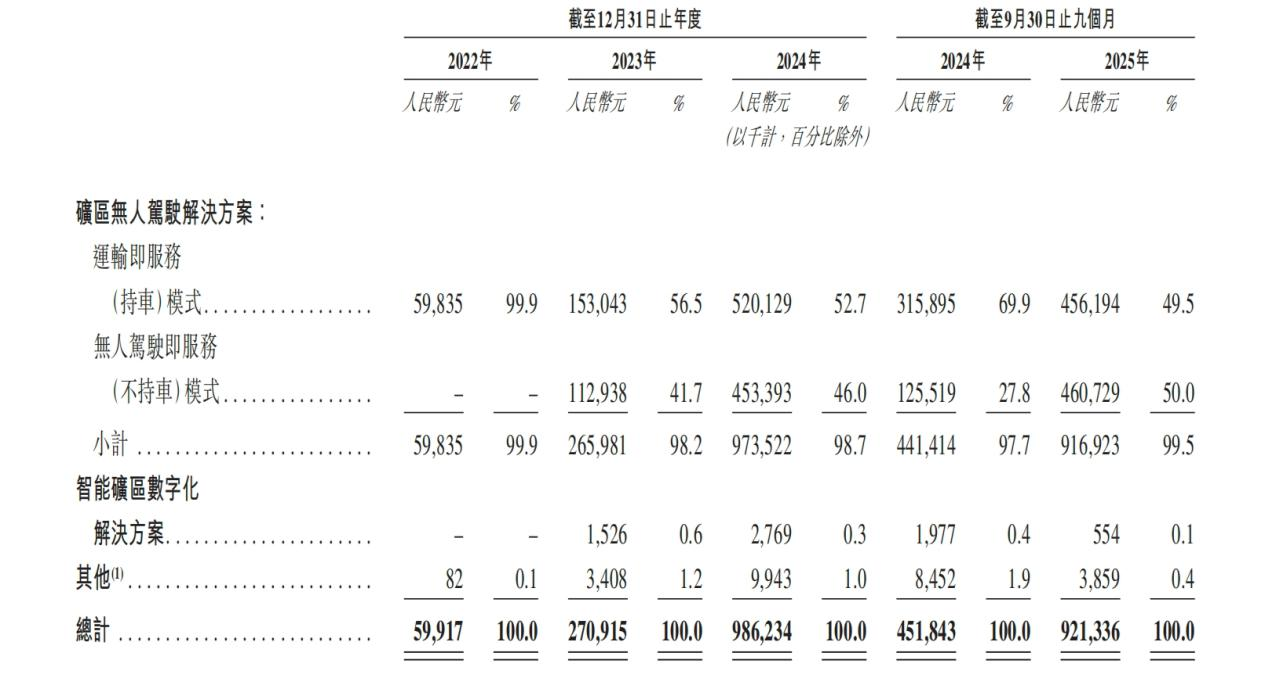 根据最新财务数据,继2024年ATaaS(不持车)模式实现收入4.50亿元,占总营收比例突破46%后,2025 年前三季度,易控智驾ATaaS(不持车)模式贡献的营收占比进一步提升至50%,达到4.61亿元,同比增长 267%。