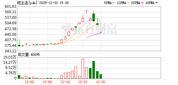 比如,12月30日,广期所铂期货主力合约再度跌停,跌幅高达13%,价格跌至589.85元/克;广期所钯期货主力合约也连续第二个交易日跌停,跌幅亦高达13%,已跌至447.45元/克。