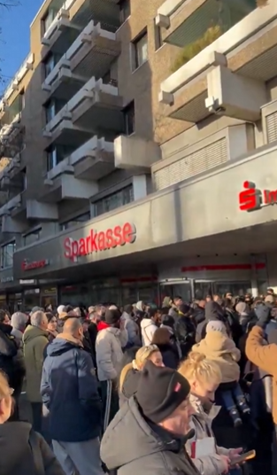 社交媒体上的影像显示,随着案情披露,大量愤怒的客户周二拥挤在依然关闭的银行网点门口。多人表示,自己放在保险箱里的财产价值远超1万欧元的保额。