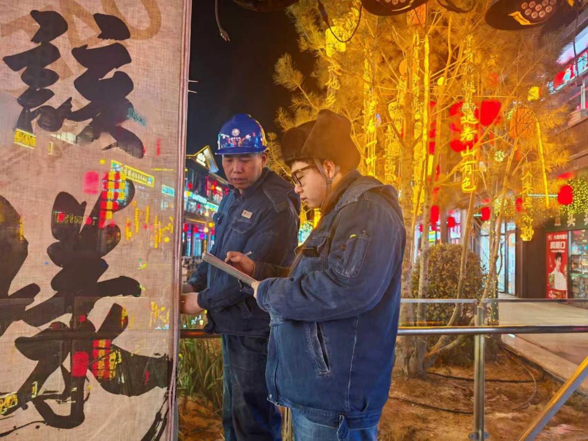 自12月15日起,靖远水街便启动了集照明与观赏功能于一体的观景灯柱安装工作。国网白银供电公司提前谋划、统筹部署,成立专项保电工作组,主动对接活动主办方,精准掌握用电需求与负荷分布情况。组织技术骨干对水街核心区、演出舞台、市集商铺及周边区域的供电线路、配电变压器、开关柜等设备开展了多轮次特巡特护,运用红外测温、无人机等技术手段,精准排查线路发热、绝缘破损、漏保缺失等安全隐患,建立隐患整改台账,实行“发现—记录—整改—销号”闭环管理,做到隐患清零、不留死角,为电网安全运行筑牢坚实屏障。