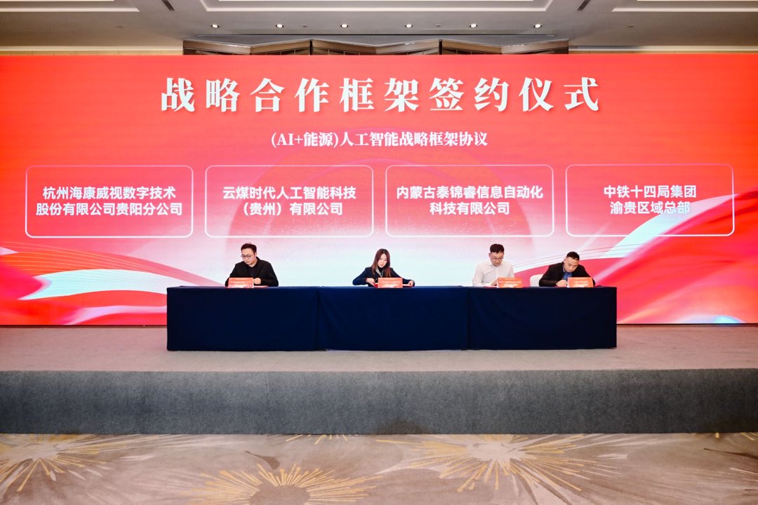 揭牌仪式后,云煤时代人工智能科技(贵州)有限公司分别与杭州海康威视数字技术股份有限公司贵阳分公司、内蒙古泰锦睿信息自动化科技有限公司、中铁十四局集团渝贵区域总部、六盘水师范学院、中国矿业大学贵州校友会等5家单位签订战略框架协议,在智能装备研发、人才培养、科技成果转化等方面达成合作共识,开启强强联合、共谋发展的新篇章,为贵州煤炭行业智能化转型注入新活力。