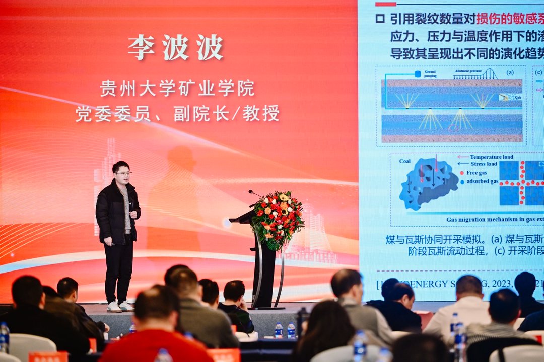 当前,“人工智能+”已成为激活煤炭行业新质生产力的核心引擎,更是推动贵州煤炭产业突破复杂地质条件限制、实现转型升级的关键抓手。大会期间,三位行业大咖带来重磅学术报告,为行业智能化转型提供前沿思路和技术支撑,引发与会代表强烈共鸣。贵州大学矿业学院党委委员、副院长李波波教授以《复杂地质构造区煤层瓦斯渗流多场耦合理论模型与工程应用》为题,深入剖析了贵州煤层瓦斯治理的难点痛点,结合最新研究成果,提出了多场耦合理论模型及配套工程技术方案,为破解高瓦斯矿井安全生产难题提供了科学遵循。贵州理工学院矿业工程学院院长徐佑林教授分享《贵州复杂地质条件无煤柱开采及工程示范》成果,通过具体案例展示了无煤柱开采技术在提升资源回收率、减少生态破坏等方面的优势,为贵州煤矿高效开采提供了实践借鉴。云煤时代人工智能科技(贵州)有限公司总经理李登茜围绕《AI+能源,赋能矿山新质生产力》主题,结合省内智能化矿山建设实例,展现了人工智能在煤炭开采、安全管控、高效利用等方面的应用潜力与实践成果,为行业数字化转型提供了生动样本。