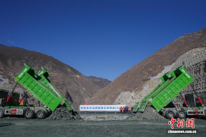 拉哇水电站位于四川省和西藏自治区交界的金沙江干流上,是国家“十四五”规划重点建设的金沙江上游清洁能源基地重要组成部分,工程总装机容量200万千瓦,库容24.67亿立方米,最大坝高242.5米。电站自2023年6月启动大坝填筑以来,累计完成填筑量约1620万立方米。