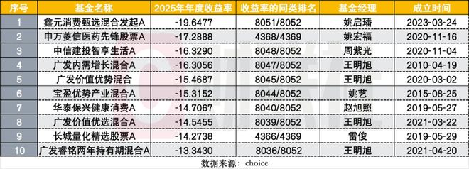 以全年19.65%的亏损率,鑫元消费甄选位居2025年主动权益产品年度亏损榜首。