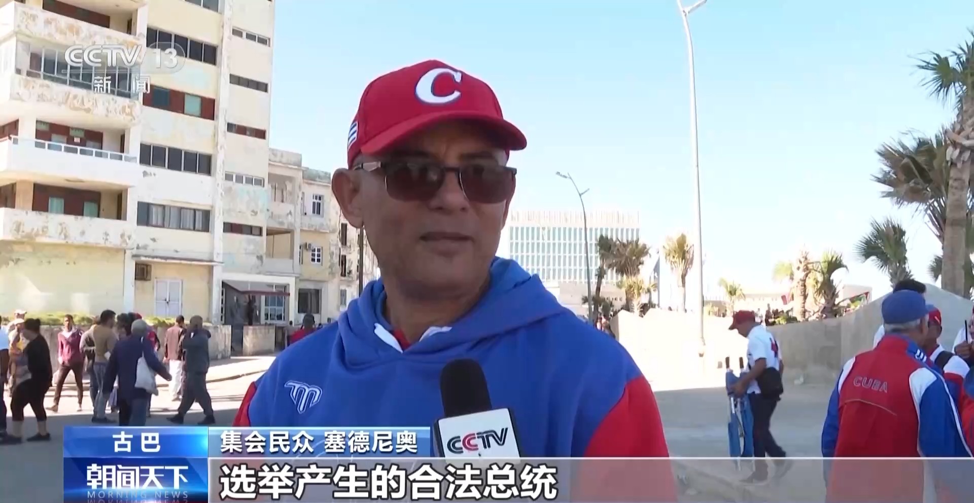 古巴集会民众 塞德尼奥:马杜罗是委内瑞拉人民选举产生的合法总统,因此美国政府,尤其是美国总统,无权在委内瑞拉采取如此大规模的军事行动。