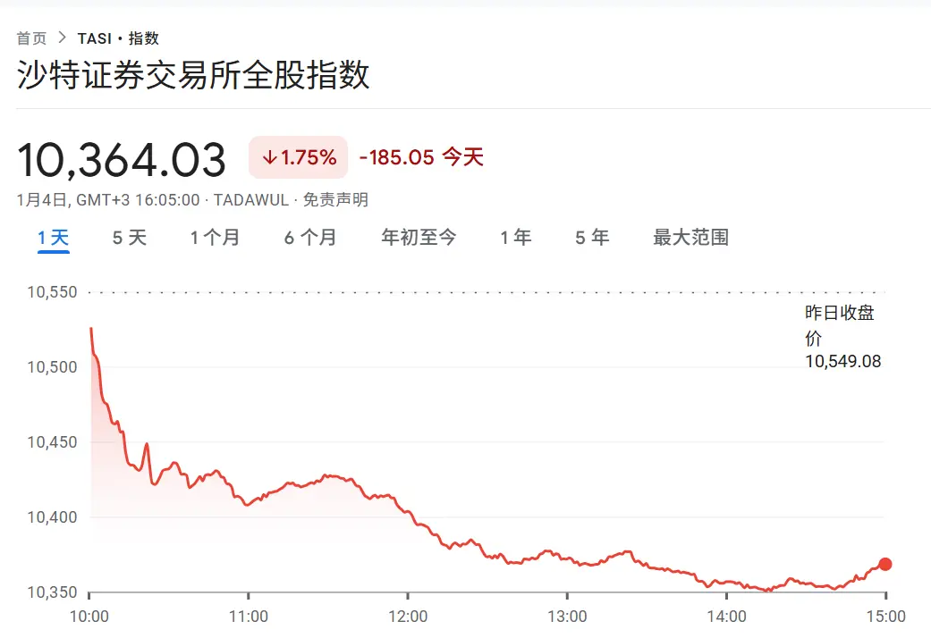 衡量沙特股市整体表现的Tadawul全股指数(Tadawul All Share Index)下跌近2%,为今年4月特朗普的关税政策引发全球市场波动以来的最大单日跌幅;各行业板块全线收跌。该基准指数也收于2023年10月以来最低水平,过去一个月大部分时间都在这一附近徘徊。
