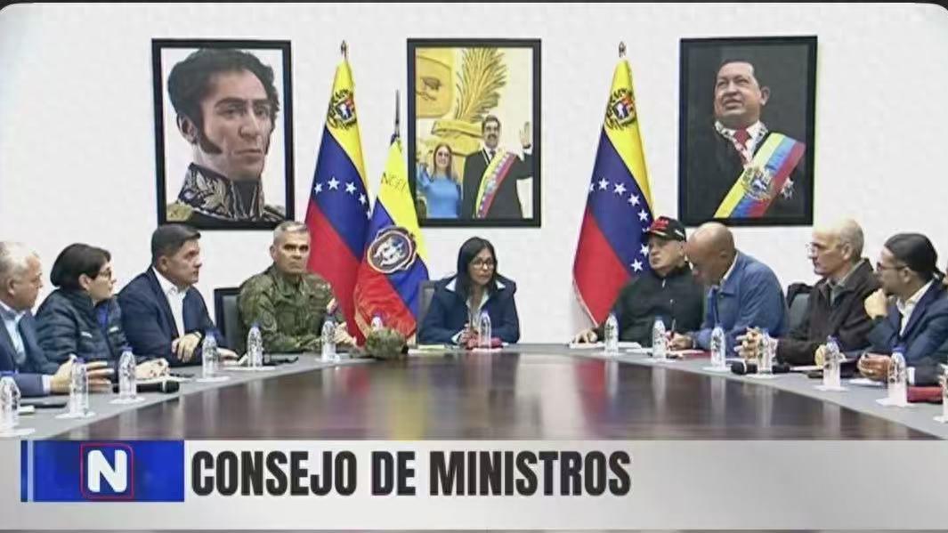 据法新社最新消息,电视画面显示,委内瑞拉代理总统罗德里格斯当地时间周日(1月4日)召开了委总统马杜罗被美国强行控制后的首次内阁会议。