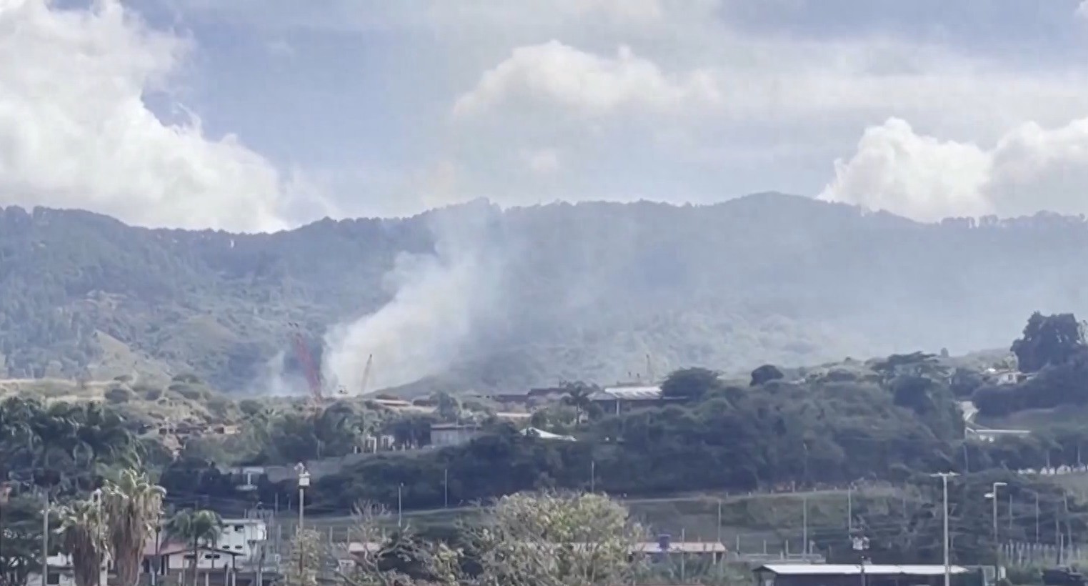△3日,委内瑞拉加拉加斯南郊一军事基地遭袭后冒出浓烟