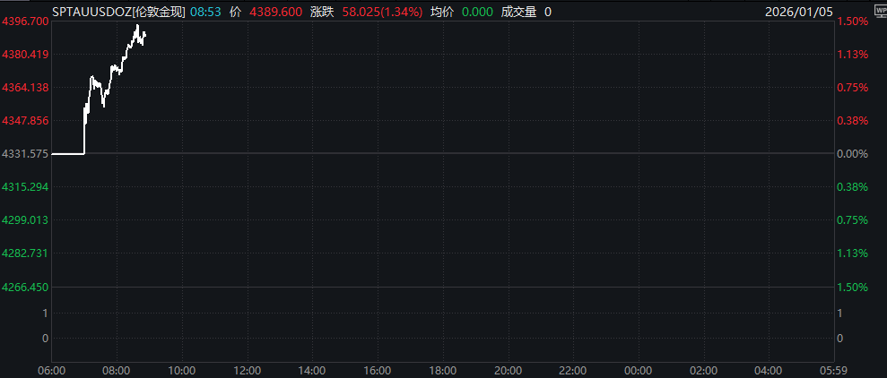 在美国周末对委内瑞拉发起“斩首式”军事行动、强行抓捕委内瑞拉总统马杜罗后,全球投资者在新年伊始正面临地缘政治风险的再度大幅升温。周一开盘后,国际油价在小幅低开后走高、现货黄金和白银价格则大幅上涨。