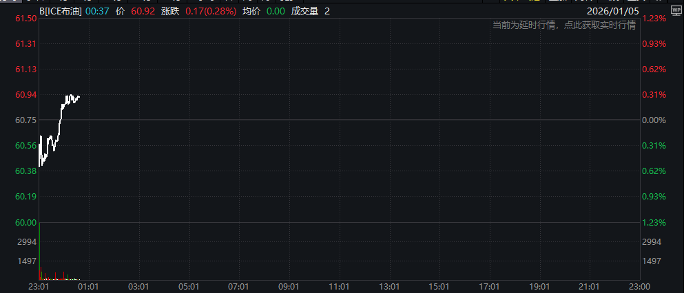 行情数据显示,在周末马杜罗被捕后,布伦特原油周一开盘一度曾短暂下跌1.2%至每桶60美元,不过此后价格又再度反弹。
