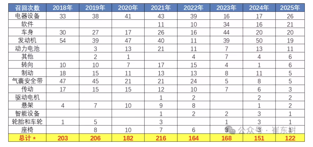 崔东树强调,近两年的召回向新能源动力特征变化较大,软件、智能设备、电池等召回逐步增多,类似传统车的发动机缺陷特征。尤其是软件性召回也在增多,今年召回软件问题车型达 45 万台。而动力电池有 18 万台,说明无论传统车还是新能源车的软件问题都逐步显现。
