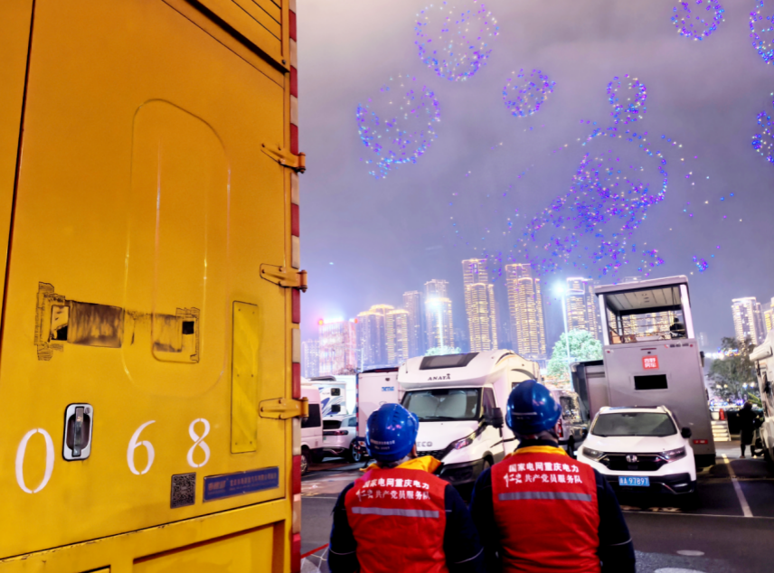 2025年12月31日晚,“新韵重庆”无人机跨年灯光秀展演在万众期待中震撼登场,为广大市民、游客送上满满的跨年仪式感。国网重庆市电力公司提前部署发电车,安排员工坚守一线,确保电力稳定供应。2026年1月1日-3日,国网重庆电力多措并举、圆满完成跨年夜和元旦各项供电保障任务。