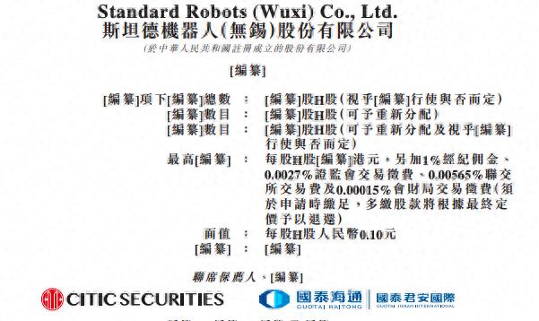 据港交所1月4日披露,斯坦德机器人(无锡)股份有限公司(以下简称“斯坦德机器人”)向港交所主板递交上市申请,中信证券、国泰君安国际为联席保荐人。