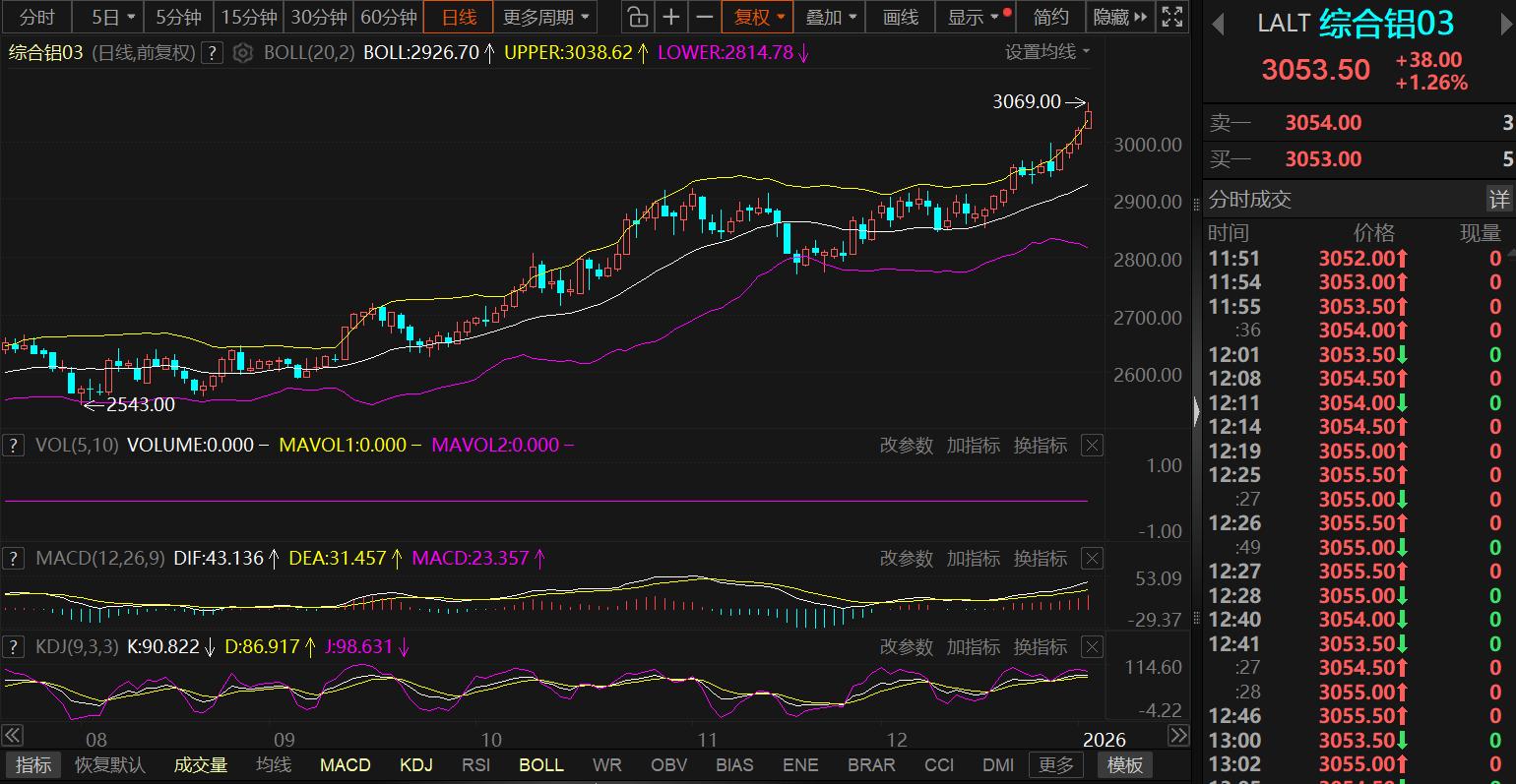 伦铝方面也在元旦假期期间继续上扬并成功突破3000美元/吨的整数关口,今日开盘之后也继续上涨,盘中最高一度上探至3069美元/吨,刷新2022年5月以来的新高。