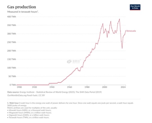 同时委内瑞拉的天然气产量更是少的可怜。据统计,2024年其天然气产量仅306方,常年来也低于387亿方。