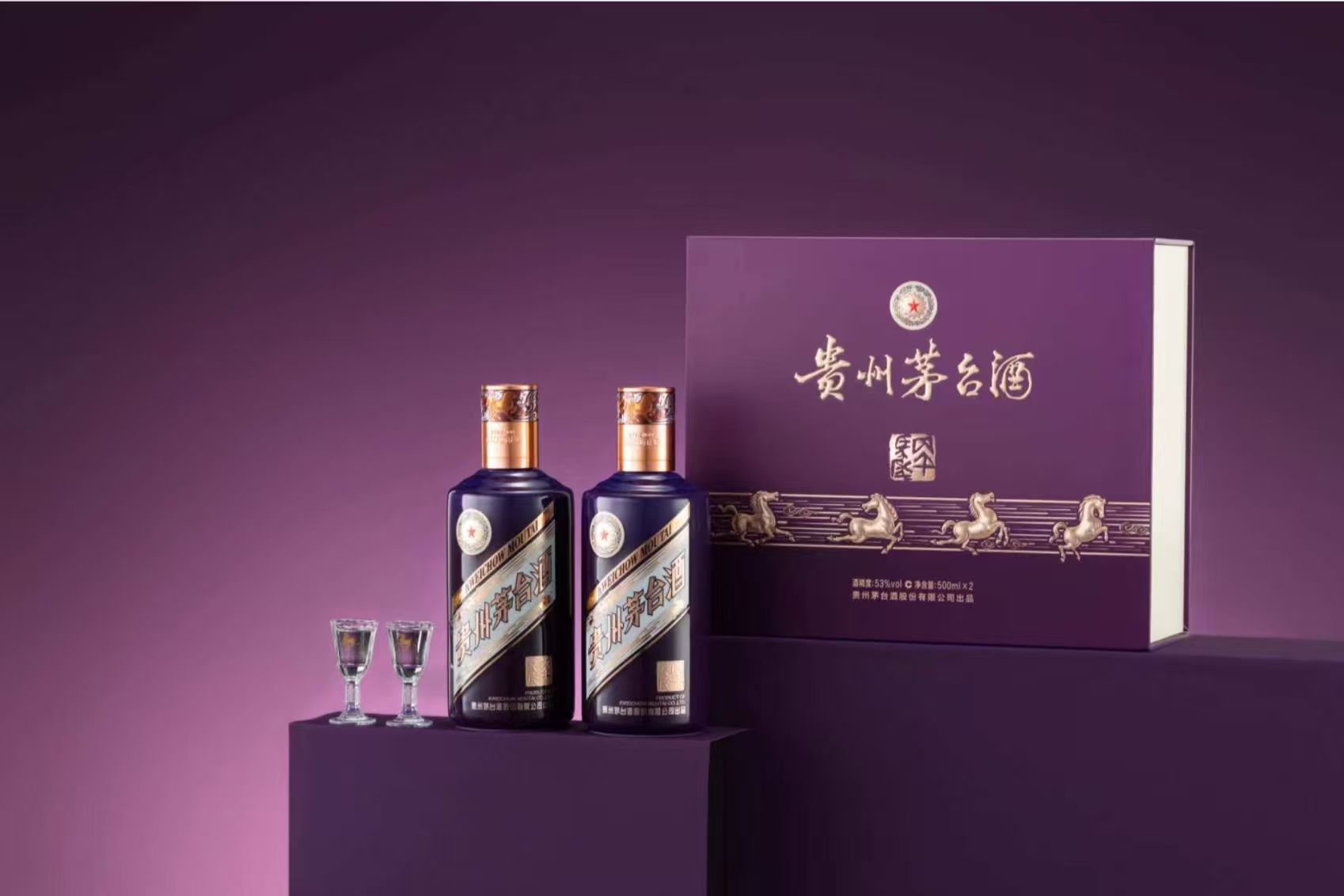 在产品设计上,“马茅”更融入文化与工艺的双重亮点,进一步提升收藏附加值。其中,珍享版采用木盒包装,将斗拱结构、“马踏祥云”金属造型和酒瓶融为一体,同时采用非遗“错金银”工艺表现形式。经典版和礼盒装,彩盒融入“马踏祥云”“丙午马年”主题元素,同时采用中国美术家协会原副主席杨力舟创作的《宝马驰骋万里行》画作。