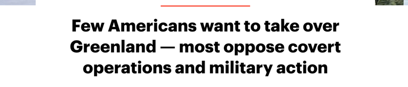 △民调机构YouGov发布最新调查显示,多数美国人反对以武力或秘密行动强取格陵兰岛